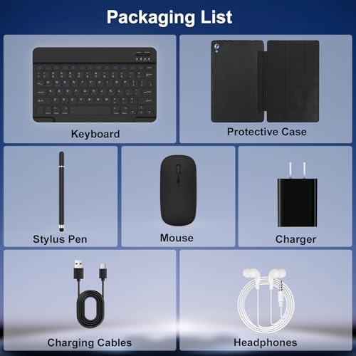 - 【Multi-Functional 2 in 1 Tablet】The C108 Android 14 Tablet featuring a 2-in-1 professional work mode with a Bluetooth keyboard, mouse, stylus, headset and foldable case, the C108 Android 14 Tablet is very easy to set up and connect, giving you the flexibility to convert your tablet into laptop mode or computer mode. NOTE: Mouse does not include batteries, batteries need to be purchased separately!