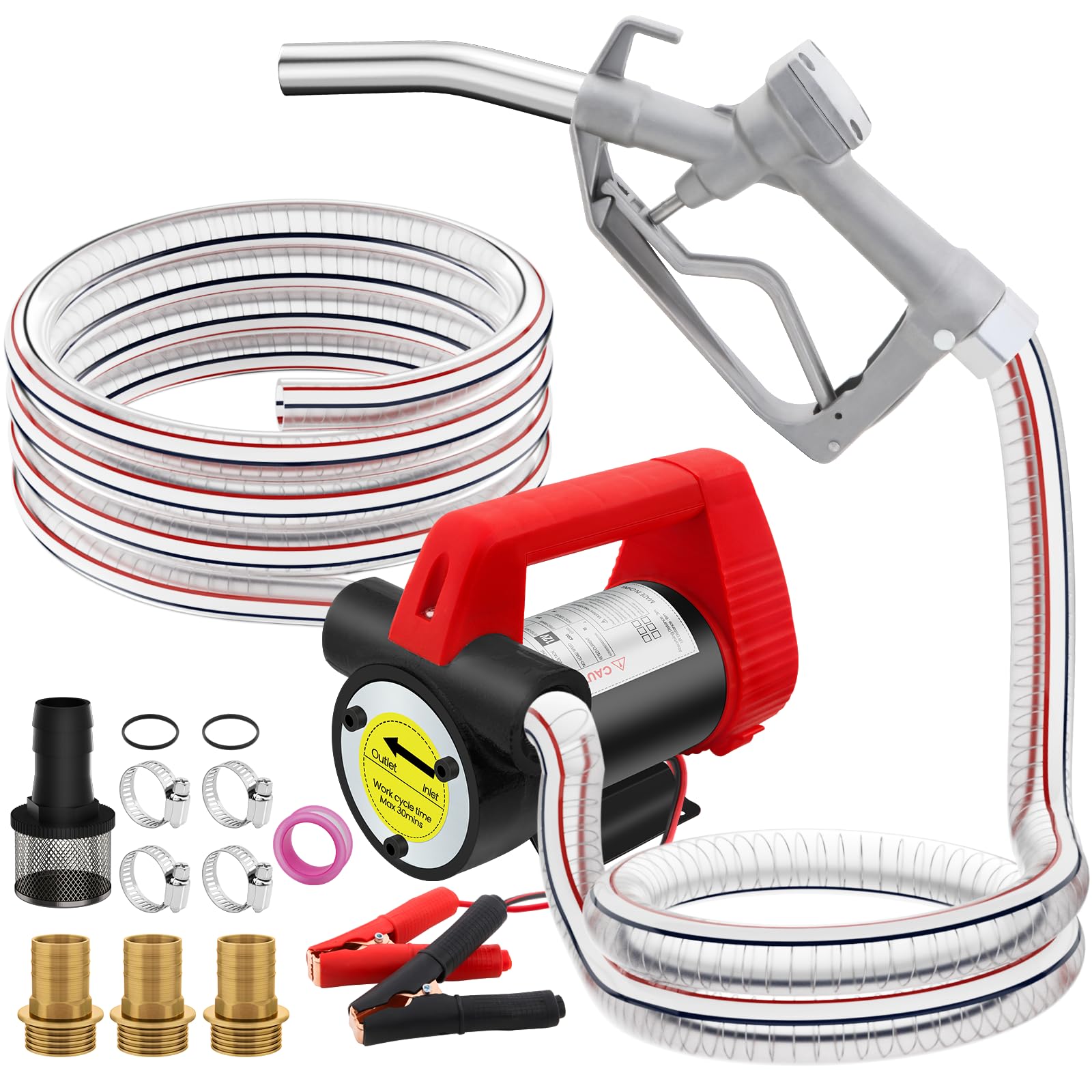 12V 200W Electric Diesel Transfer Pump, 45L/min Fuel Transfer Pump, Self Priming Fuel Transfer Extractor Pump Kit with Aluminium Manual Nozzle and Hoses