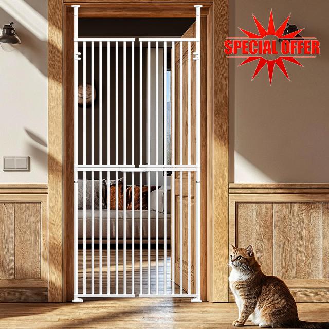 - 【Safety Lock】The pet gates for cats is Features a hidden security lock that can be opened with one hand, but this can be difficult for pets to open. What's more, extra tall pet gate has an upgraded thicker pipe wall, making it more solid and stable.
