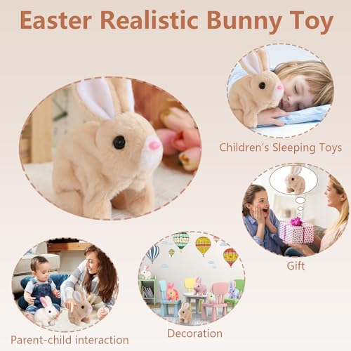 - 【Realistic design】Cute plush rabbit toys just turn on the switch and can jump forward like a real rabbit, make a sound, and even wiggles its ears simulation of eating, authentic fur texture and bright eyes create an irresistibly cuddly experience for young bunny lovers