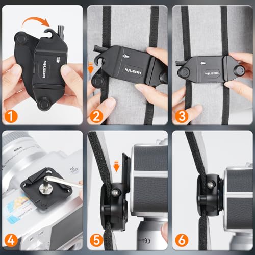 - 【SLIDE IN THE LOCK AND QUICK RELEASE】The Camera Backpack Strap Clip slides in and automatically locks, further improving the smoothness of quick installation; press the release button to quickly remove the camera, and the double anti-slip design absolutely guarantees the safety of the camera