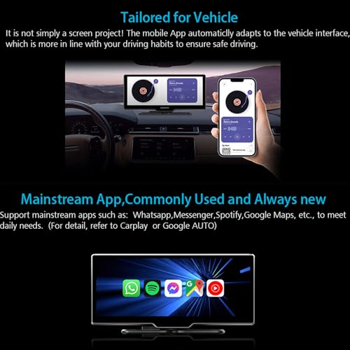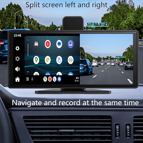 Getcartablet CarTablet Pro Max 2024 Model, 10.26-Inch IPS HD Touch Screen, Portable Carplay & Android Auto Screen, 4K Front + 1080P Rear Backup Camera, Voice Control, Black