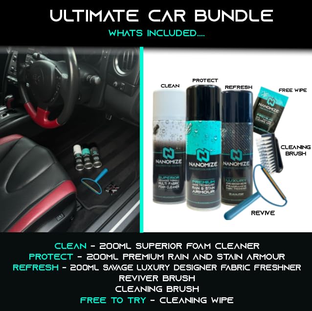 - The Nanomize Ultimate car interior cleaning set offers the perfect products to CLEAN, PROTECT AND REFRESH your car interior. However dirty your seats, carpets and mats are these products will make easy work cleaning out dirt, protecting them in the future and making them smell great. The Car interior Cleaning Set is perfect for anyone who wants a one stop solution whether new to car cleaning or a proffesional.
