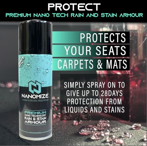 - PROTECT : Your favourite items with Nanomize Armour Waterproof Spray, a premium water repellent that offers superior protection against rain, stains, and spills. Perfect for Car Interiors, shoes, jackets and delicate fabrics, our advanced NANO formula creates a breathable, long-lasting barrier that keeps items looking new. Whether you’re facing rainy weather, an accidental spill, or everyday dirt, Nanomize Armour is your all-in-one solution