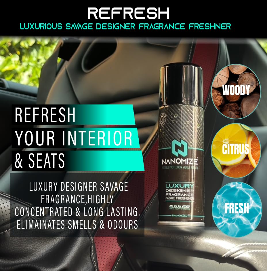 - REFRESH : Premium Men's Savage Fragrance Inspired Scent – Experience the bold and sophisticated aroma of our fabric freshener, inspired by leading men’s fragrances. Concentrated Formula – Just a few sprays of this 200ml freshener are enough to refresh your interiors with a long-lasting, intense scent.