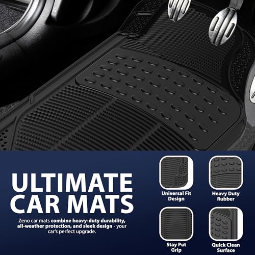 ZENO 4 Piece Universal Car Mats | Universal Floor Car Mats | Heavy Duty Rubber Mats | Non Slip All Weather Mats for SUVs, Vans, Trucks & Cars | Easy To Clean | Waterproof | Black
