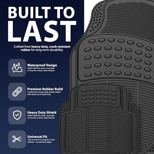 - HEAVY DUTY RUBBER MATERIAL – Crafted from strong, flexible rubber that resists cracking, warping, and tearing. Built to endure harsh conditions and daily use, offering long-lasting floor protection in all seasons.
