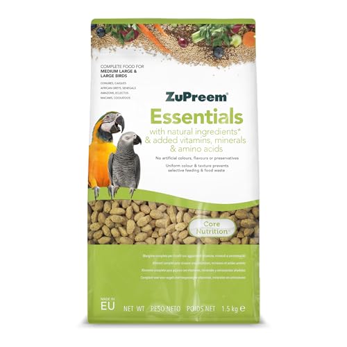 ZuPreem Essentials Complete Bird Food Suitable for Conures, Cockatoos, African Greys, Macaws and other Medium/Large Birds 1.5kg