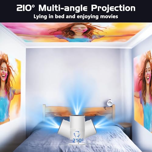 【Auto Keystone】Mini Projector WiFi6 Bluetooth with Android App, 210° Rotatable Portable Projector 4K 1080P Supported, Video Projector, Compatible with TV Stick, Smartphone (bullet in Android App)