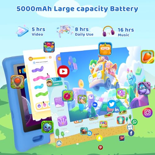 - 【Multifunctional】The kids tablet is equipped with a 1280×800 HD screen, 5000 mAh battery, low power processor, 5MP front camera and 8MP rear camera, wifi, bluetooth and two speakers to meet the requirements of online learning and video calls. Our kids tablet is covered by a one-year warranty. If technical problems occur while using the product, you can always contact our customer service