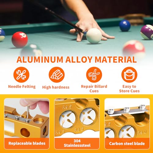 - 【Perfect Idea】 This advanced pool cue shaper makes a perfect Idea for billiards enthusiasts. Keeping your cue tips in perfect condition enhances your hitting experience.