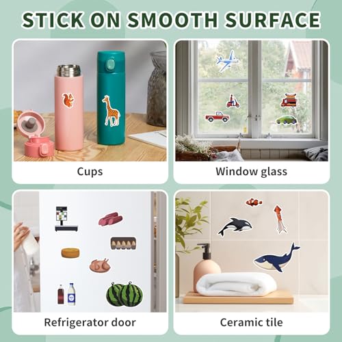 - Material:The stickers are made of PVC material, no glue, durable, waterproof and environmentally friendly. Not easy to stick fade and tear off. Kids can stick not only on sticker books, but also on smooth surfaces like windows, glass, mirrors, etc.
