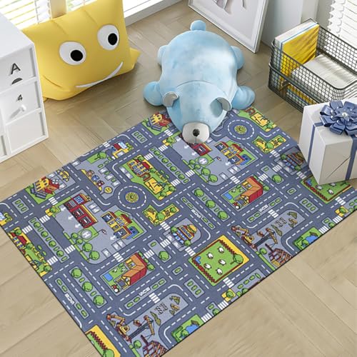 City Town Car Roads Interactive Playroom for Children's Kids Boys Girls 80cm x 120cm Creative Playmat Soft Durable for Toddler Educational Classroom Nursery Bedroom Play Carpet Ma