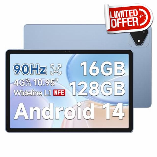 iPlay60 Pro – 11 Inch Tablet – Android 14, 90Hz Screen FHD 1920 x 1200, MTK G99, 16GB + 128GB/1.5TB TF, 4 Speakers/Face ID/Widevine L1/7000mAh/18W PD, 4G LTE, GPS