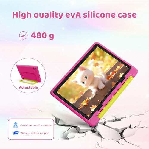 - 【Beautiful and practical tablet case】The tablet comes with sturdy and soft case, so you don't have to worry about dropping the tablet; the back has a hidden tablet stand, which can be opened to stand on the desktop, which can free your hands when you watch movies. It's a great gift for children's birthday, Christmas, Halloween and Children's Day.