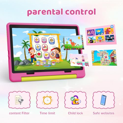 - 【Parental Control】 The 10 inch tablet for children includes a nice parental control mode, filter unsafe web pages, limit time on the tablet, so that your kids can have a good online environment. Tablet's LCD is designed with low blue light technology. With one click you can enter reading mode, reducing screen flicker and eye damage caused by irritating blue light.