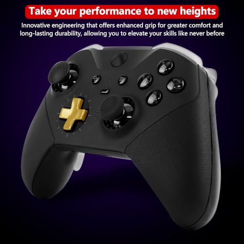 Metal Thumbsticks for Xbox Elite Controller Series 2 Replacement Magnetic Buttons Kit Includes 4 Swap Magnetic Joysticks,4 Paddles,1 Standard D-Pads, Accessories Parts for Xbox One Elite 2 (Gold)