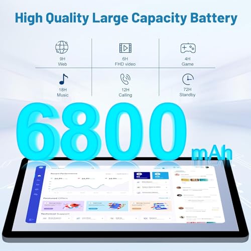 - 【Ultra High Performance Octa-Core CPU + large-capacity battery】 Powerful 10 inch tablet comes with new generation ultra-high performance and low power consumption Octa-Core 2.0GHz CPU, achieve faster and more stable running and storage speeds. Equipped with a 6800mAh high-capacity battery, provides enough energy to operate the tablets 10 inch.