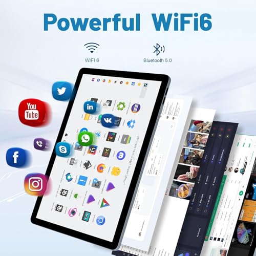 - 【Enjoy More Functions】 Android tablet adopts the WiFi 6 technology support 5G and 2.4G high-speed WiFi, it has a more stable wireless signal, achieves faster transmission speed.The tablet android 10 inch has built-in Bluetooth 5.0 function, which is more stable and faster. Plus, the 11-inch IPS HD Screen, has a super high resolution of 1280 x 800. Equipped with a clear 5-megapixel front camera and 8-megapixel rear camera, record every moment in your life.