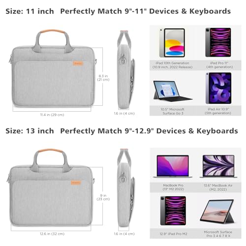 - 【Dimension & Compatible】External dimensions: 29 x 21 x 4 cm / 11.4 x 8.2 x 1.6 inch (L x W x H),Internal dimensions: 28 x 20 x 2.5 cm / 11 x 7.8 x 1 inch (L x W x H); Compatible with 11" iPad Pro M4, 11" iPad Air M2, 10.9" iPad Air, 10.9" iPad 10, 10.5" Surface Go 3, 10.6" Tab M10 Plus Gen 3, 10.5" Galaxy Tab A8, 11" Samsung Galaxy Tab S8, 10.95" MatePad 11, 10.4" MatePad.
