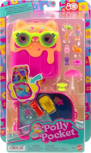 - It’s a purr-fect day! This Polly Pocket Kitty Popsicle Resort Compact features one micro doll and 11 accessories, including one pet.