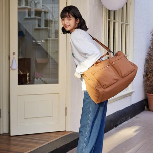 Sports Gym Bag Travel Duffel Bag Foldable Overnight Weekend Bags with Shoes Compartment for Men Women, Lightweight Hospital Bag Water Resistant Holdall Bag Cabin Bag for Sports and Travel (Brown)