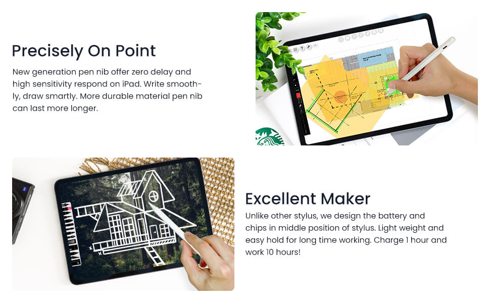 ✏ [Tilt for Sketching] Professional sketching stylus for touch screen. Design different angles can make your brush different. When you draw different angles, will create different line and shadow on screen. Which means you can sketching on your iPad like a real sketching pencil.