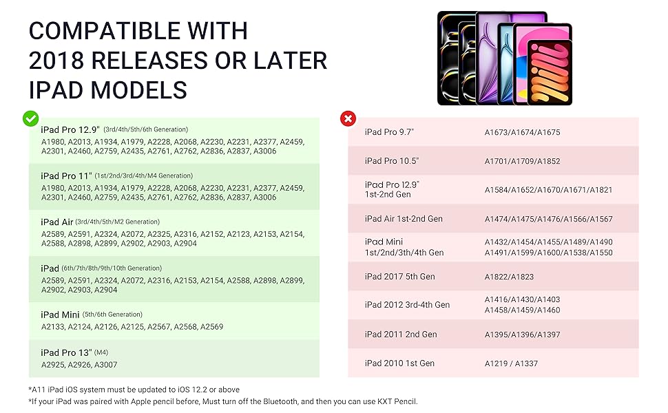 ✏ [Only for iPad] ***COMPATIBLE WITH Apple iPad launched in 2018 or after: iPad 9.7" & 10.2"(6th 7th 8th 9th 10th Gen), iPad Air (3rd 4th 5th 6th Gen ), iPad Mini (5th/6th Gen), iPad Pro 11" & 12.9"(3rd & 4th 5th 6th Gen) & pro 13"***