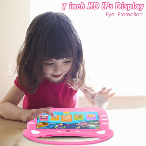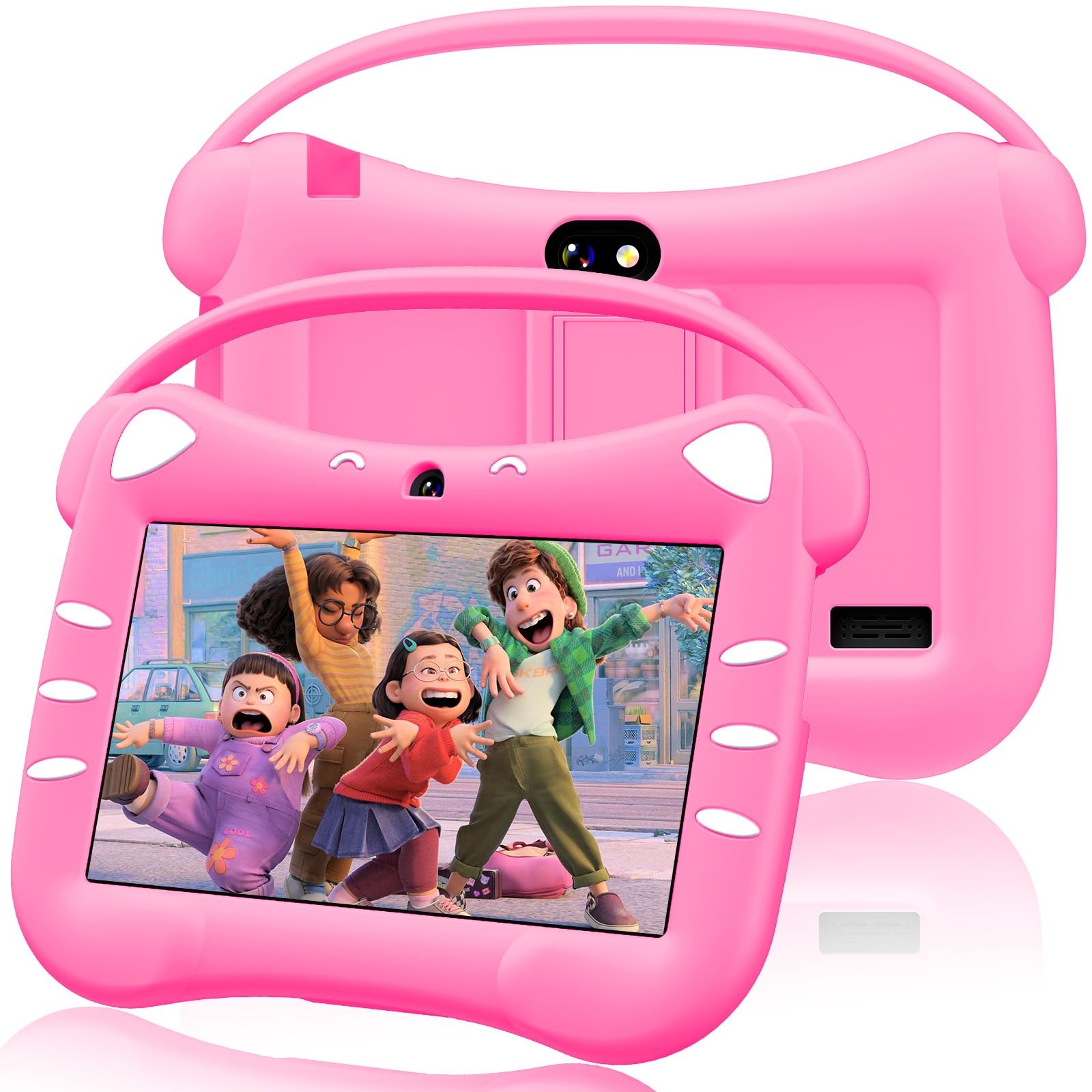 Toddler Tablet for Kids 7 Inch Kids Tablet Android with WiFi Dual Camera Bluetooth Parental Control Shockproof Case Educational Games 32GB ROM ages 3-14 year old (Rose Red)