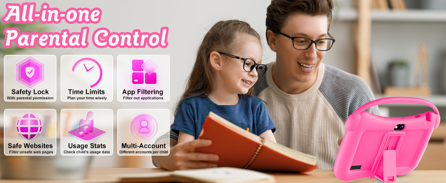 VESWWE toddler tablet has built-in parental control function, which can understand children's usage in real time, set usage time, block bad websites and applications, and create a healthy and green network environment for children.