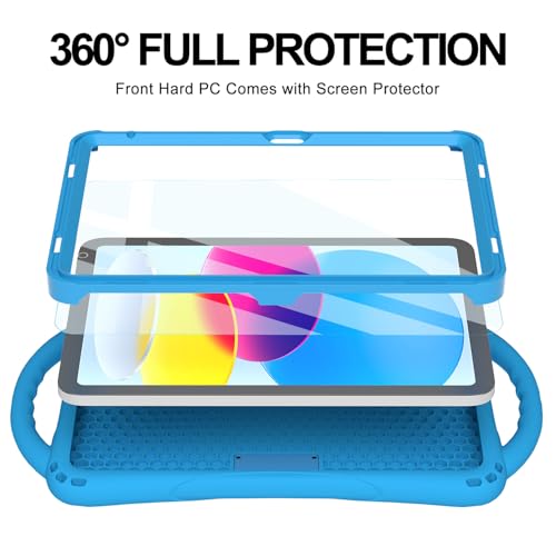 TOPESCT Kids Case for iPad A16 11th/10th Generation (2025/2022) 11inch/10.9inch- Made of Kid-Friendly Silicone, with Built-in Screen Protector, Shockproof Handle Stand Case For iPad 11th/10th Ge
