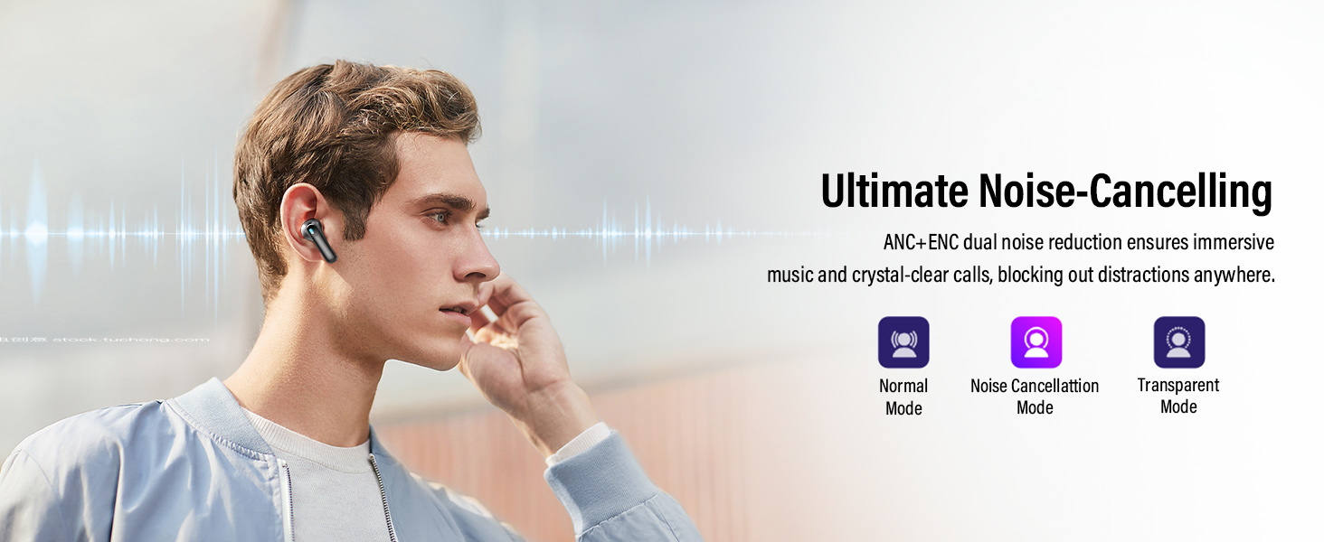 - Multi-Mode Noise Cancellation: Our headphones offer both ANC (active noise cancellation) and ENC (environmental noise suppression) modes, enabling you to switch freely based on your environment. In noisy settings, activate ANC for a peaceful, clear listening experience; when you need to be aware of your surroundings, switch to ENC mode to catch important sounds. This feature provides a more intelligent and convenient audio experience.