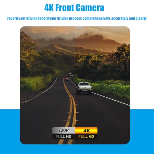 - 【4k Front and Rear Cameras】The front 4k camera can enhances the smoothness and record your driving record your driving process comprehensively, accurately and clearly. Simple operation makes driving safety and parking easier. The camera wire is connected to the reverse light, very convenient to install