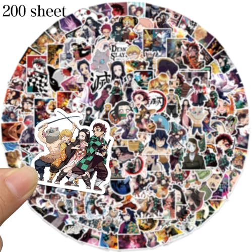 Demon-Slayer Stickers, Anime Stickers, 200pcs, Demon-Slayer Cartoon Waterproof Sticker, Driflo Cute Sticker, Demon S-Layer Merch, for Party Bag, Skateboard, Bottle, Laptop