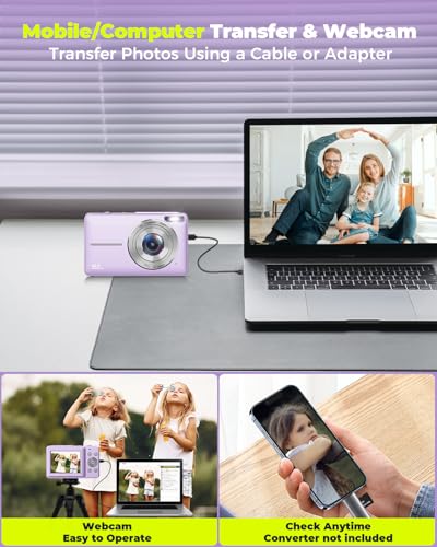 - 【Suitable for Children】This digital camera is perfect for children. Parents can give it to their children as a holiday nice surprise and let them use it to photograph and record the beautiful everyday life.This portable camera is also effective in preventing children from becoming addicted to their mobile phones.