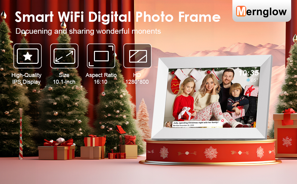 - 【Absolute Privacy and Security】This digital photo frame wifi use Frameo APP , Frameo is a professional photo management application that originated in Denmark, with absolute privacy and security. Except for the users you have added, no one can access your digital photo frame, so you don't have to worry about any photo leakage. Frameo has users in more than 25 countries/regions worldwide and is the most popular album software. Mernglow digital photo frame is authorized by the Frameo App company. Absolute privacy and security