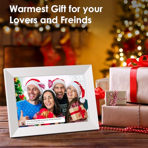 - 【The Warmest Gift for Your Loved Ones】The digital frame preload with memorable photos and meaningful videos with funny captions, this is sure to be a heart-warming surprise for your grand-parents, parents or anyone who would like to share important moments in your family. Anyone in the fam can send photos to the same digital picture frame. A perfect gift option for Mother's Day, Father's Day, Halloween, Thanksgiving, Christmas, birthdays, weddings, and all other joyous celebrations.