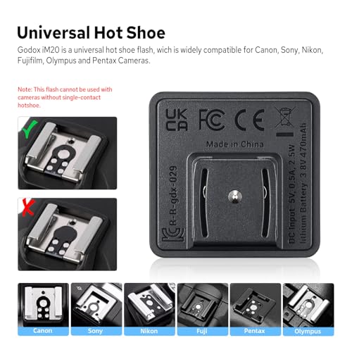 GODOX iM20 Camera Flash Mini iFlash Recycle Time 3s On-Camera Flash Speedlite for Sony Canon Nikon Fuji Olympus Cameras, 5 Power Levels