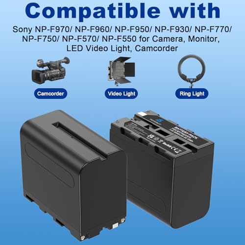 - 【Extended Shooting Capacity】NP-F970 lithium-ion rechargeable battery has high capacity of 8800mAh and 7.4V/65.12Wh. Long battery life ensures lasting power, providing reliable performance during long shooting periods. Suitable for all devices using Sony NP-F interface batteries, replacement battery pack for Sony NP-F330 NP-F530 NP-F550 NP-F570 NP-F730 NP-F750SP NP-F750 NP-F770 NP-F930 NP-F950 NP-F960 NP-F970 NP-F975 NP-F980 NP-F990, suitable for long-term video production and photography projects without memory effect.