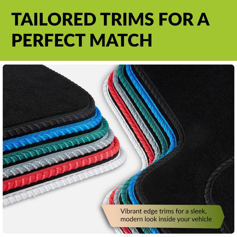 - STYLISH & DURABLE DESIGN – Our Car Mats are feature stylish black edges and a durable construction, these mats not only safeguard your car but also add a touch of elegance to your vehicle's interior.
