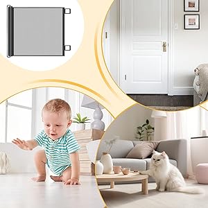 - Vast Application: By automatically retracting, this dependable pet gate effectively secures your entire house from children and pets, especially in high-risk areas such as kitchens, doorways, and stairs, preventing unwanted entry