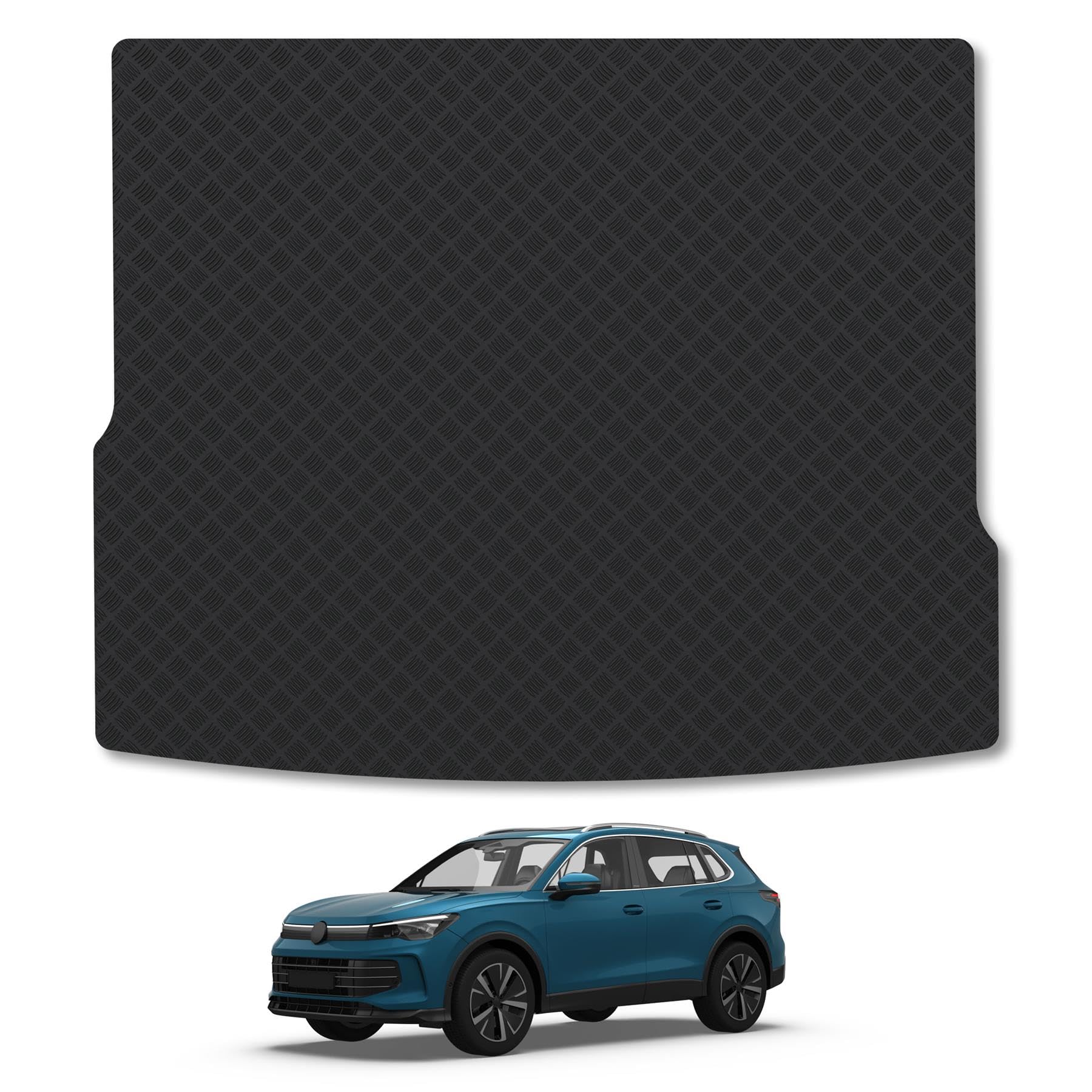Rubber Boot Liner Compatible with VW Tiguan (2024+) [UPPER-FLOOR BOOT POSITION] Tailored Fit Heavy-Duty Premium 3mm Rubber Protector Boot Mat Anti-Slip Durable Waterproof Custom Fit Dog Friendly