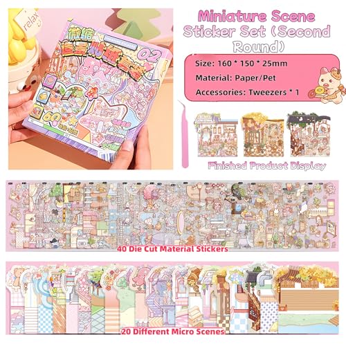 The Second 3D Miniature Scene 20 Sets of Stickers,DIY House Sticker with Tweezers Make Your Own Cute Cartoon Sticky Pack for Adults Girls Relief Stress Pass The Time,Party Favors Birthday Gif