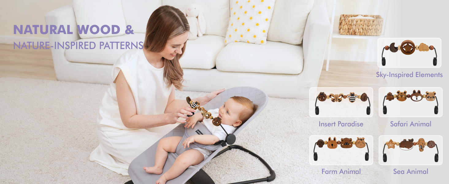 Merchant videoWooden Toy Bar for Bouncer – Keeping Baby's Curiosity