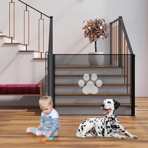 Retractable Dog Gate, Mesh Baby Gate Retractable, No Drilling Retractables Pet Gates, Safety Doors, Doggy Barrier, For Bedroom/Stairs/Doorways/Hallways
