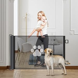 Retractable Dog Gate, Mesh Baby Gate Retractable