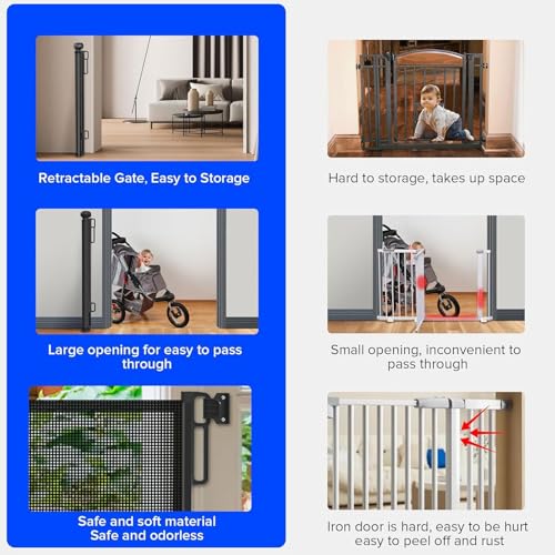 - Hassle-Proof Assembly: This retractable dog gate provides effortless installation without drilling, making it great for use at delicate wallpaper or uneven appearances, supported by a detailed and clear step-by-step guide