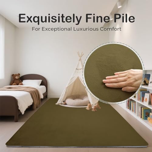SETHEPACE 3CM Thick Baby Crawling Mat, Soft Army Green Rugs Living Room 80×200 CM, Mellow Mat, Short Pile Rugs for bedroom, Kids Room, Nursery, Baby Play Mat with Non-slip Backing