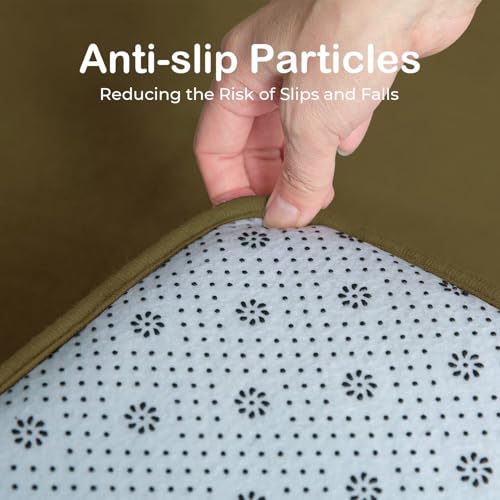 - Anti-Slip Backing Reduce Fall Risks: The bottom of our bedroom rug features dotted plastic particles that provide a strong grip on all floor types, from smooth tiles to wooden or slightly rough surfaces. This non-slip design prevents shifting and reduces fall risks, especially for the elderly and children.