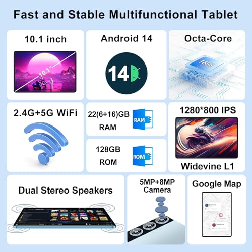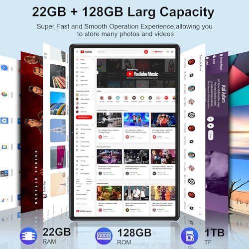 - 【22GB RAM + 128GB ROM + 1TB Expandable】Android 14 Tablet are equipped with 6GB RAM, enable RAM expansion technology, you can expand the RAM up to 22GB,128GB of storage space is enough to store your favorite movies, photos and apps and the expandable storage allows you to add up to 1TB with a SD card (sold separately).the new Memory Manager provides cleaning suggestions to free up space on the tablet (including cleaning Junk files, Delete duplicates, Delete large files, Delete downloaded files).